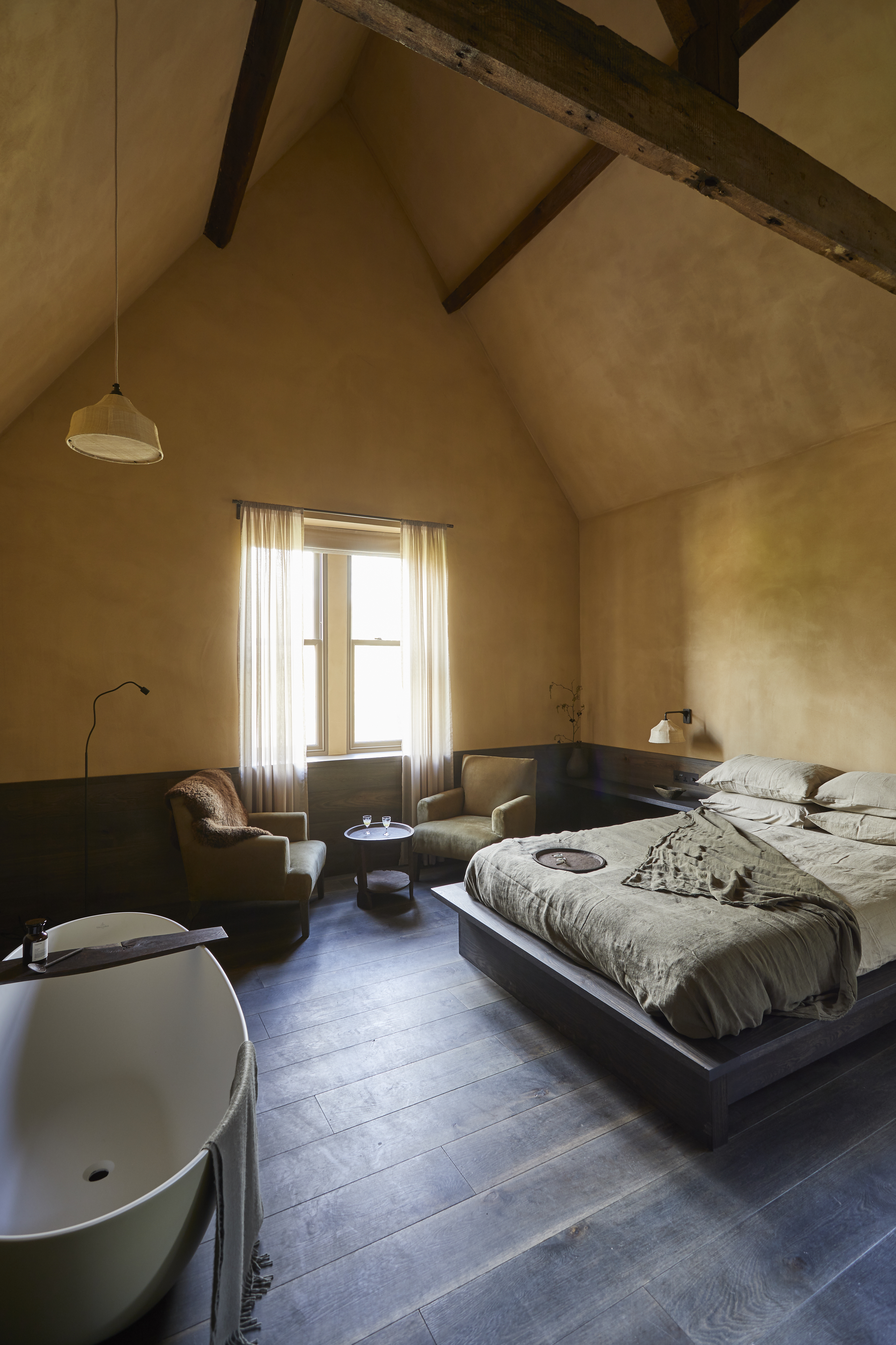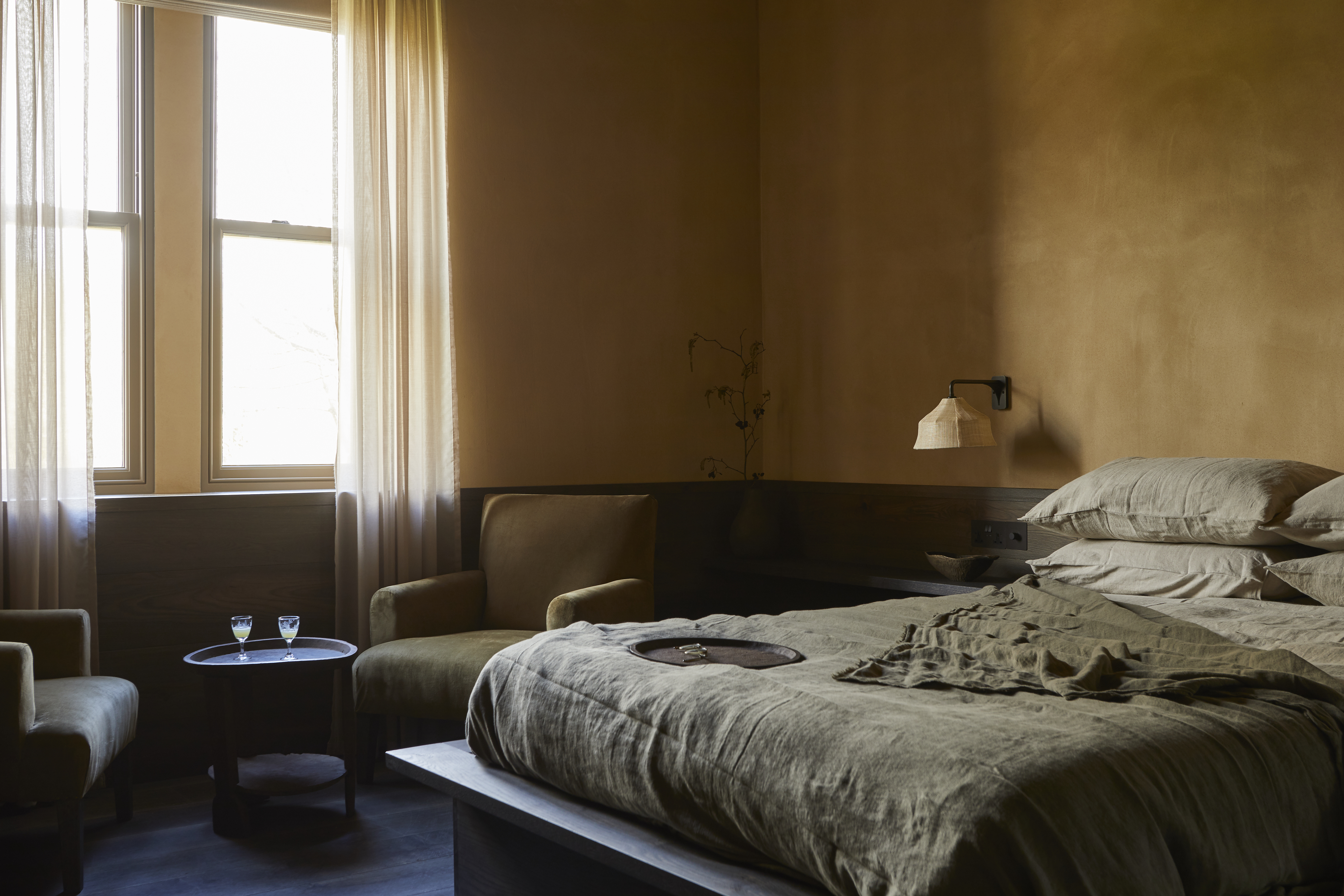 Above the inn we have crafted five restful, screen-free bedrooms. With a contemporary feel and considered quality, each is furnished by independent makers and purpose-led companies that value sustainability.